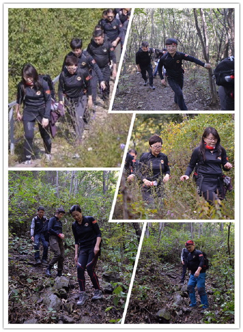 山腳下,各位隊(duì)員都很認(rèn)真的進(jìn)行了熱身訓(xùn)練。隨后,我們按照強(qiáng)帶弱,老帶新,三人一組,向著1000米的“高山”,走起?!拔以?jīng)跨過山和大海,也穿過人山人海?!鄙狭松剑旅婢驮撎蕉戳?,來吧,展示!