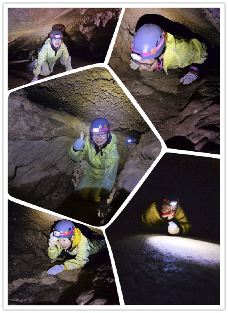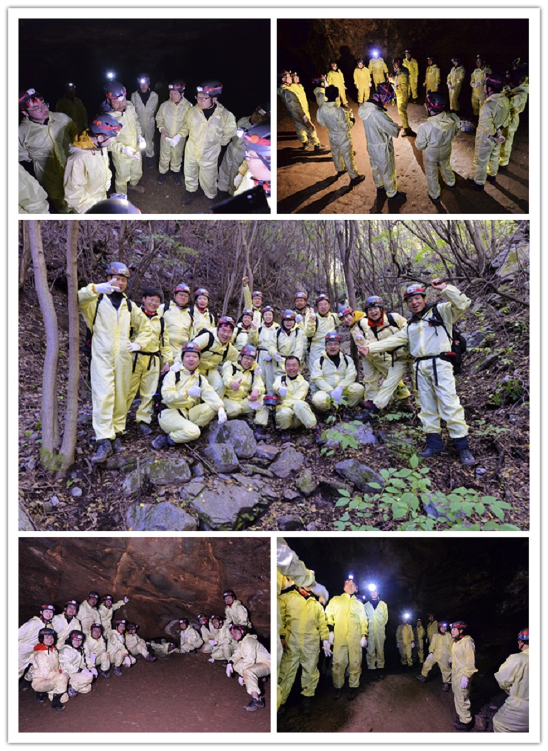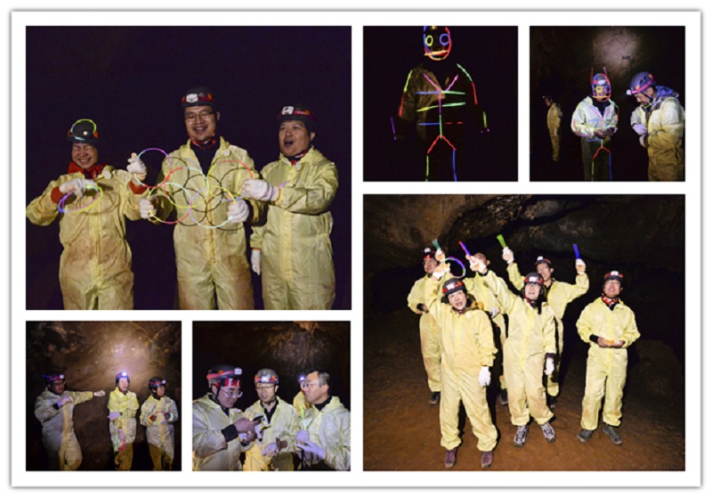 剛走進(jìn)山洞洞口,就感到一股涼氣撲面而來,再加上洞內(nèi)陰森森的,只有頭上那一點(diǎn)兒燈光,還真有那么點(diǎn)兒瘆人。然而這只是開胃小菜,真正的挑戰(zhàn)才剛剛開始。走著走著,洞口變小,想要前進(jìn),就只能彎著腰了。隨著繼續(xù)深入,難度再度升級(jí),來到第二層,開啟半蹲半爬模式。這還沒完呢,難度繼續(xù)升級(jí),來個(gè)全趴的,距離嘛,加長一倍。第三層走起!隨后我們又以小組為天團(tuán),以洞穴為舞臺(tái),帶上熒光棒,讓我們忘掉恐懼與配備,放開心扉,此時(shí)此刻,沒有言語,只有歌聲與歡笑。