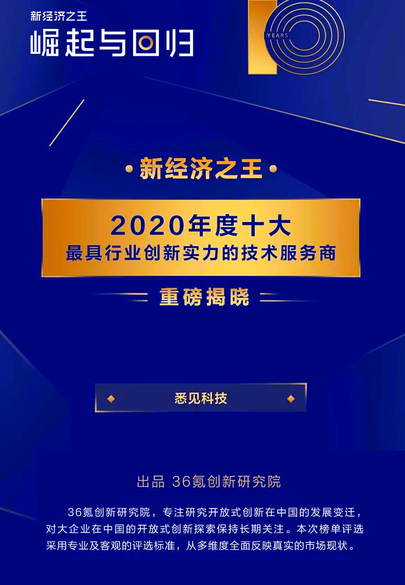 在新經(jīng)濟(jì)十年之際,在WISE2020評(píng)選出了開放式創(chuàng)新十大技術(shù)服務(wù)商。他們具有技術(shù)成熟度,擁有強(qiáng)大的技術(shù)研發(fā)團(tuán)隊(duì),在技術(shù)研發(fā)上有前瞻性;他們具有服務(wù)能力,能將技術(shù)與產(chǎn)業(yè)深度結(jié)合,服務(wù)大企業(yè);他們具有商業(yè)價(jià)值,有創(chuàng)新解決方案的實(shí)施能力,并且方案有行業(yè)可復(fù)制性。