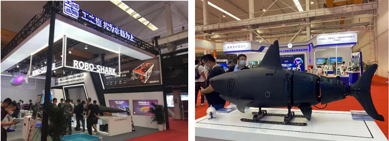 博雅工道展臺(tái)陳列的產(chǎn)品令觀眾目不暇接。仿生鯊魚(yú)、無(wú)人潛航器、水中運(yùn)動(dòng)裝備、水面清潔機(jī)器人等創(chuàng)新產(chǎn)品吸引了大家的目光。產(chǎn)品已應(yīng)用于工程巡檢、勘察打撈、河流治理、教育科研等領(lǐng)域。
