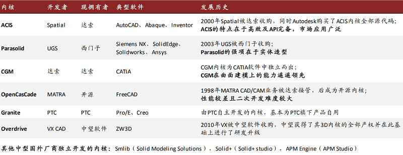 3D CAD區(qū)別于2D CAD的核心難點(diǎn)是幾何建模內(nèi)核。幾何內(nèi)核是最基礎(chǔ)的核心組件,也是我們國家目前最關(guān)注的領(lǐng)域。2D在內(nèi)核上的門檻相對較低,除自主開發(fā)之外,也有部分公司通過付費(fèi)成為ITC聯(lián)盟的成員,對IntelliCAD進(jìn)行包裝并推出產(chǎn)品。而3D的實(shí)體建模、曲面建模本質(zhì)上是數(shù)學(xué)問題,算法要求較高,中小廠商很難進(jìn)行獨(dú)立開發(fā)。