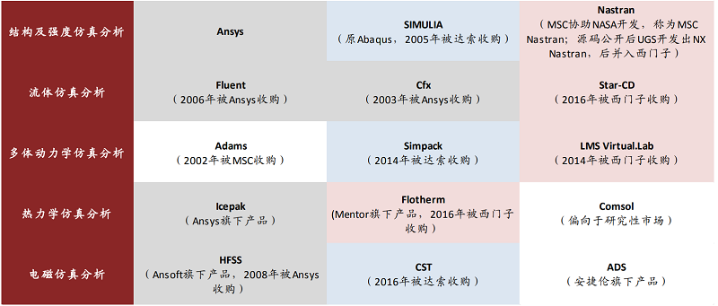 Ansys、西門子、達(dá)索等巨頭多是采用外延收購的方式,來補(bǔ)充在多個(gè)仿真方向上的能力。