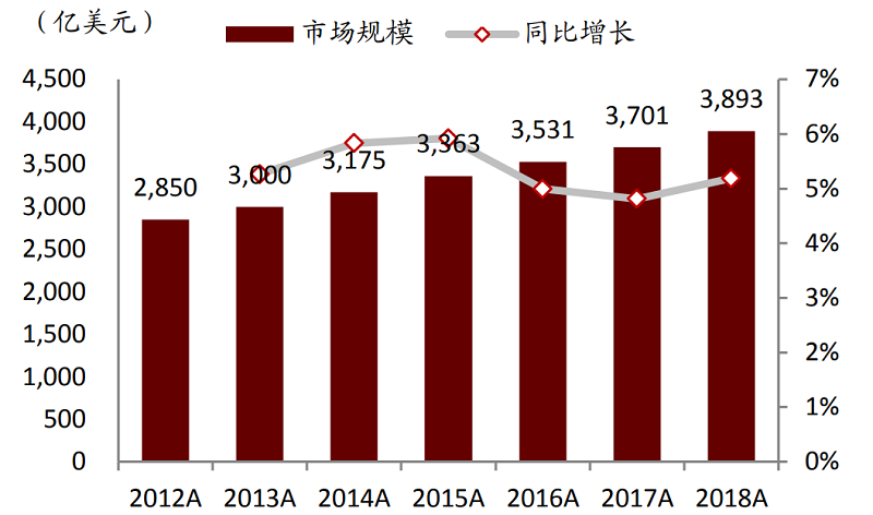 截至2018年底,全球工業(yè)軟件市場規(guī)模達(dá)到3893億美元,同比增長5.2%。