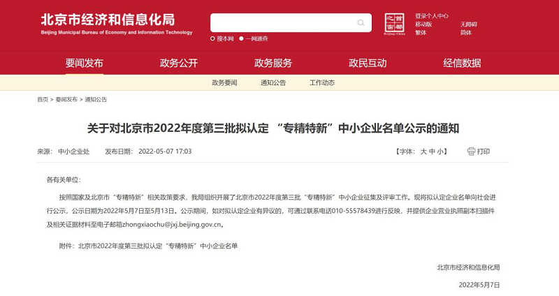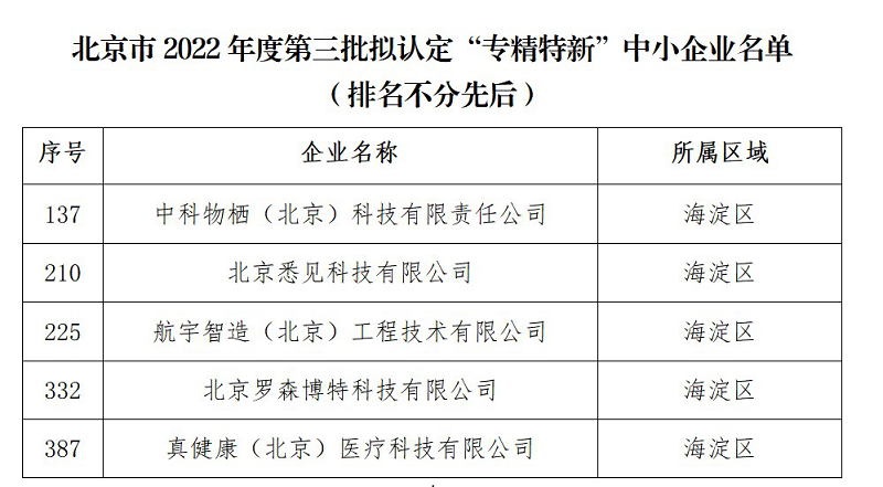 5月7日,北京市經(jīng)濟(jì)和信息化局公布了2022年度第三批擬認(rèn)定 “專(zhuān)精特新”中小企業(yè)名單,中科物棲、悉見(jiàn)科技、航宇智造、羅森博特和真健康等5家金科君創(chuàng)投資的企業(yè)成功入選。