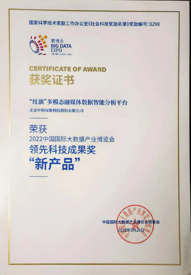 5月26日,在2022中國國際大數(shù)據(jù)博覽會(huì)領(lǐng)先科技成果發(fā)布活動(dòng)上,中科聞歌“紅旗”多模態(tài)融媒體數(shù)據(jù)智能分析平臺(tái)榮獲領(lǐng)先科技成果獎(jiǎng)?!凹t旗”多模態(tài)融媒體數(shù)據(jù)智能分析平臺(tái)由中科聞歌自主研發(fā),依托源自中科院深厚的多語言、跨模態(tài)、全媒體和深度語義理解核心技術(shù)積累,申請專利和著作權(quán)百余項(xiàng),擁有自研核心算法3000余個(gè),多項(xiàng)核心技術(shù)居國際一流和國內(nèi)領(lǐng)先水平。目前已廣泛應(yīng)用于媒體、黨政、教育、企業(yè)等多個(gè)領(lǐng)域。