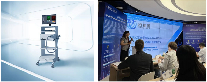 幾天前,超維景生物在2022中關(guān)村國際前沿科技創(chuàng)新大賽上也取得佳績。作為全球首個(gè)實(shí)現(xiàn)微型化雙光子顯微成像技術(shù)的高新技術(shù)企業(yè),超維景生物憑借自主研發(fā)的“便攜式雙光子皮膚顯微成像系統(tǒng)”,成功入圍“生物健康領(lǐng)域TOP10”榜單。該大賽密切跟蹤前沿科技新趨勢,圍繞人工智能、醫(yī)藥健康、集成電路等新興產(chǎn)業(yè)領(lǐng)域,面向全球公開選拔一批擁有全球首創(chuàng)、世界領(lǐng)先的前沿技術(shù)初創(chuàng)團(tuán)隊(duì)和企業(yè)。