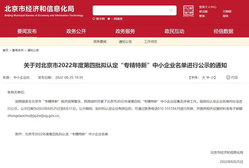 近日,北京市經濟和信息化局公布2022年度第四批擬認定“專精特新”中小企業(yè)名單。東方瑞豐、景達生物通過專家評審,榮獲“專精特新”中小企業(yè)稱號,充分體現(xiàn)了政府部門對企業(yè)自主創(chuàng)新能力和核心競爭力的認可。