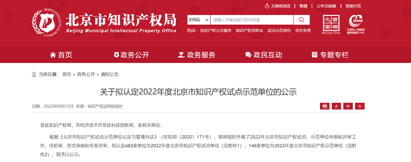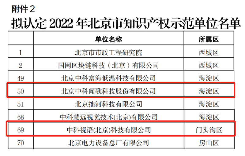 中科聞歌、中科視語:光榮入選北京市知識產權示范單位