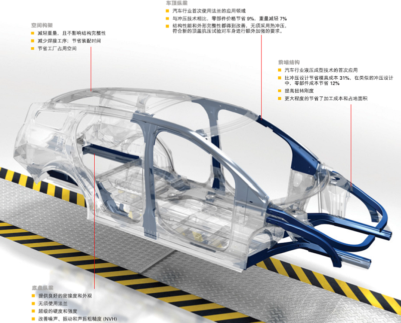 通過院士等組成的專家組評審,認為該項目成果整體技術達到國際先進水平,其中金屬管材熱態(tài)氣體脹形與快冷強化工藝、隱藏式2GPa熱氣脹雙B柱結構等達到國際領先水平。項目獲得發(fā)明專利20項(其中國際專利3項)、實用新型專利11項。產(chǎn)品已在多個車型上實現(xiàn)批量應用,經(jīng)濟和社會效益顯著,應用前景廣闊。