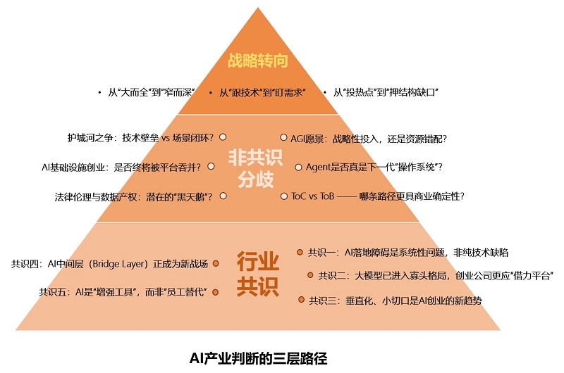 穿越周期的關(guān)鍵策略,是在共識(shí)方向中選擇“跑得快”的垂直場(chǎng)景,搶占應(yīng)用紅利;在非共識(shí)方向中尋找“跑得久”的結(jié)構(gòu)缺口,構(gòu)建長(zhǎng)期護(hù)城河。唯有在規(guī)模、能力與節(jié)奏之間找到匹配點(diǎn),才能在AI創(chuàng)業(yè)中實(shí)現(xiàn)突圍與沉淀。