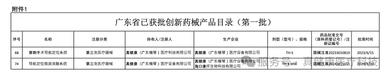 為加快推動創(chuàng)新藥械研發(fā)、產(chǎn)業(yè)化和應(yīng)用,廣東省工業(yè)和信息化廳等四部門近日聯(lián)合公布《廣東省已獲批創(chuàng)新藥械產(chǎn)品目錄(第一批)》,共收錄107種創(chuàng)新藥械產(chǎn)品,其中三類醫(yī)療器械35種。君創(chuàng)Family企業(yè)真健康(廣東橫琴)醫(yī)療科技有限公司(簡稱“真健康”)自主研發(fā)的2款三類創(chuàng)新醫(yī)療器械——穿刺手術(shù)導(dǎo)航定位系統(tǒng)(序號:68)、導(dǎo)航定位微波消融系統(tǒng)(序號:74)成功入選。