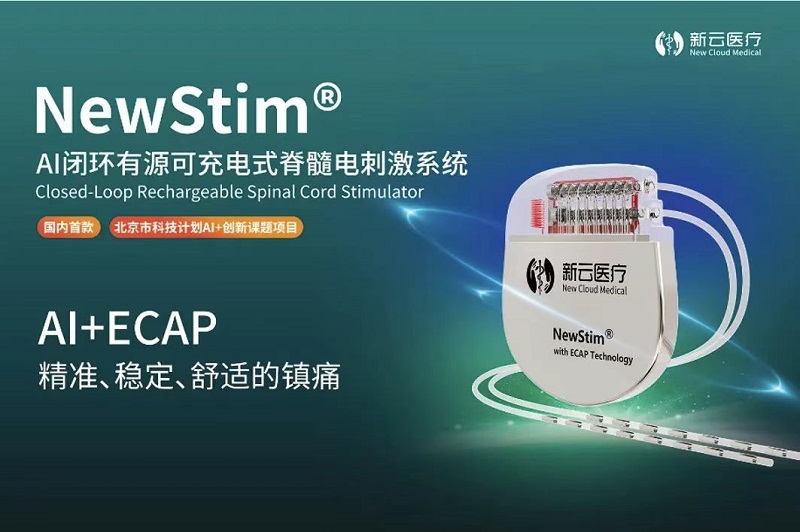 隨著技術(shù)的快速迭代,尤其是AI在醫(yī)療領(lǐng)域的跨越式發(fā)展。新云醫(yī)療看準(zhǔn)時(shí)機(jī),深度融合AI、脊髓接口等技術(shù),創(chuàng)新研發(fā)出國(guó)內(nèi)首款“AI閉環(huán)植入式可充電脊髓電刺激系統(tǒng)NewStim®”。NewStim®在軟硬件技術(shù)層面都做了系統(tǒng)升級(jí),可根據(jù)實(shí)時(shí)測(cè)量的誘發(fā)復(fù)合動(dòng)作電位(ECAP)信號(hào)自動(dòng)調(diào)整刺激參數(shù),使人體疼痛區(qū)域被電脈沖激活的神經(jīng)纖維數(shù)量始終維持在恰當(dāng)水平,確?;颊咴诓煌w位和活動(dòng)下均獲得穩(wěn)定、有效的疼痛緩解。