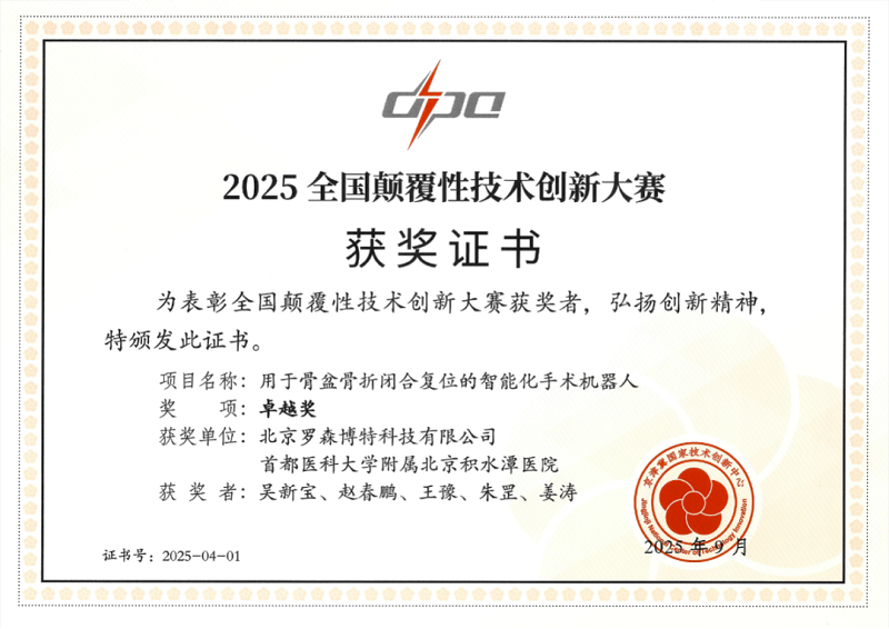 羅森博特成立于2017年,專注于智能醫(yī)療領(lǐng)域原始創(chuàng)新,以臨床剛需為驅(qū)動,深度醫(yī)工交叉為基礎(chǔ),致力于成為偉大的原創(chuàng)智能醫(yī)療產(chǎn)品和服務(wù)供應(yīng)商。其核心產(chǎn)品羅森萬相®智能化骨科手術(shù)機器人系統(tǒng)是通過積水潭醫(yī)院臨床團隊、北航科研團隊以及羅森博特工程師們十多年的深度醫(yī)-工-企結(jié)合、原研創(chuàng)新,最終在全球范圍率先實現(xiàn)了在最高難度的骨盆骨折手術(shù)中的臨床應(yīng)用,填補了“骨科手術(shù)機器人全流程輔助閉合復(fù)位、微創(chuàng)固定”的國際空白。目前該系統(tǒng)已在全國22個省市,47家三甲醫(yī)院投入使用,成功開展600+例復(fù)雜骨盆及長骨骨折閉合復(fù)位內(nèi)固定手術(shù),手術(shù)效果良好,獲得了臨床專家的一致認(rèn)可。