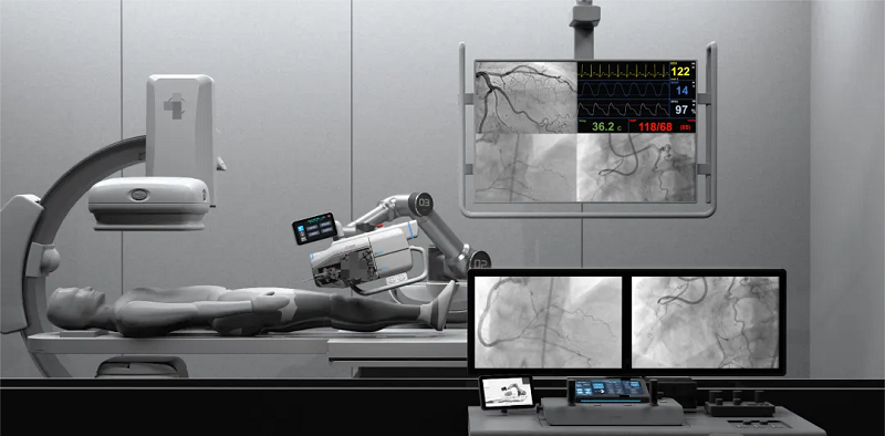 其入圍的多通道泛血管介入手術(shù)機(jī)器人系統(tǒng)是全球首個(gè)多通道血管介入手術(shù)機(jī)器人。該產(chǎn)品面向冠脈介入、神經(jīng)介入及外周介入手術(shù)臨床需求,通過自主研發(fā)的多通道多器械協(xié)同遞送、介入器械精細(xì)操控、力感知力反饋、影像導(dǎo)航及5G遠(yuǎn)程控制等技術(shù),實(shí)現(xiàn)了對(duì)簡(jiǎn)單、復(fù)雜病變介入治療的全面覆蓋。其人機(jī)交互結(jié)構(gòu)設(shè)計(jì)更加貼近醫(yī)生現(xiàn)有的手術(shù)方式,能有效濾除手部抖動(dòng),提高主刀醫(yī)生的手術(shù)操作精度和穩(wěn)定性;機(jī)器人無菌部分采用快速安裝/拆卸的傳動(dòng)分離式結(jié)構(gòu)設(shè)計(jì),安裝流程簡(jiǎn)單,確保了臨床使用過程中的無菌性和易更換性。此外,該產(chǎn)品還增加了三維智能導(dǎo)航功能,可完成全自主遞送器械至左冠前降支和回旋支,相較于醫(yī)生操作,器械遞送更穩(wěn)定,遞送精度更高。目前,該產(chǎn)品已擁有包括血管介入機(jī)器人結(jié)構(gòu)設(shè)計(jì)、力反饋、多模態(tài)智能導(dǎo)航、自主手術(shù)操作等30余項(xiàng)核心國(guó)內(nèi)發(fā)明專利和美國(guó)PCT專利。